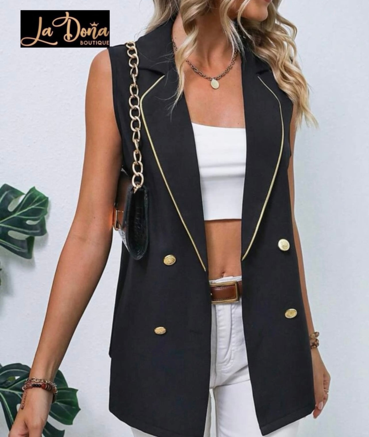 Chaleco blazer color negro con botones dorados